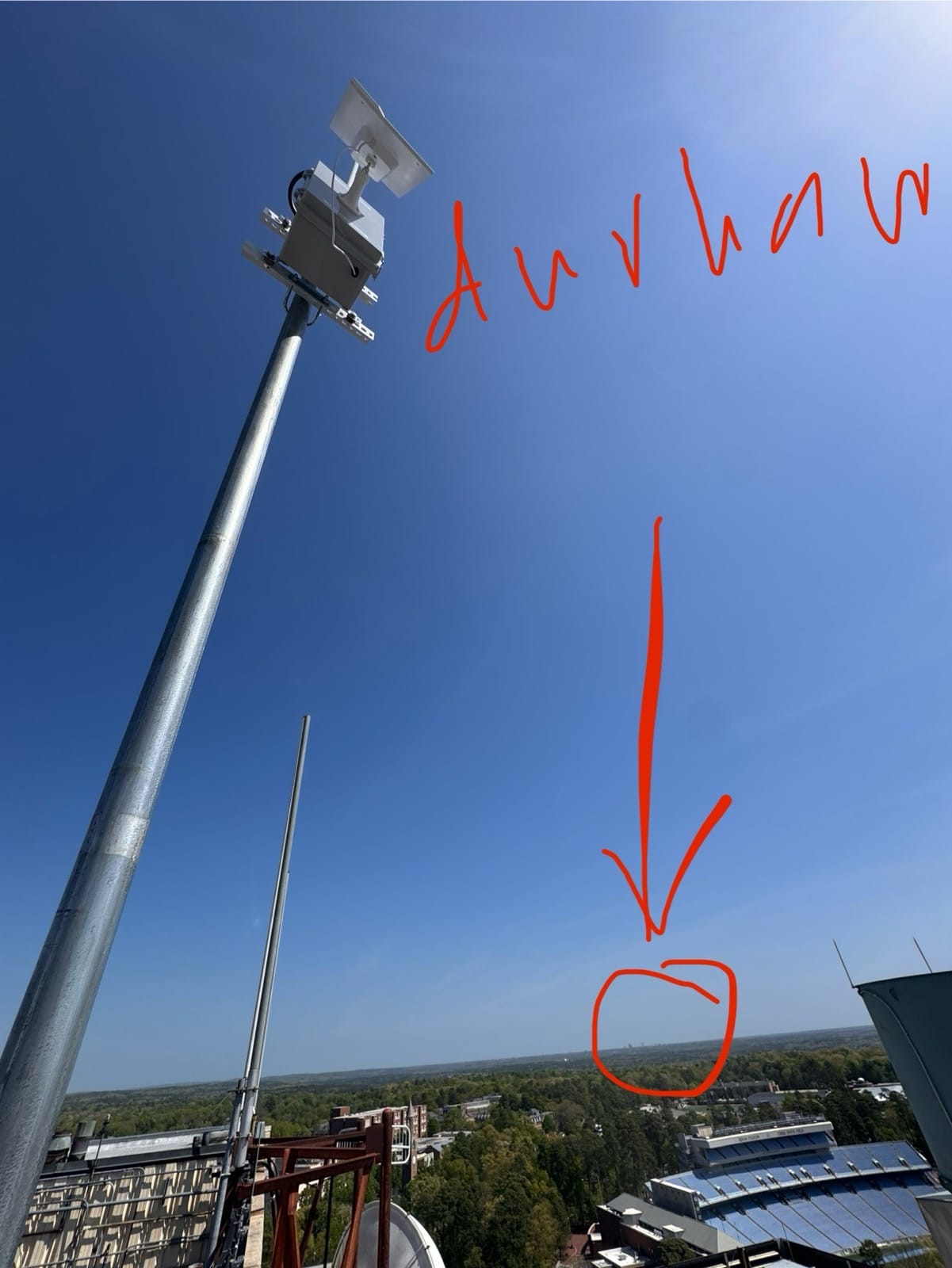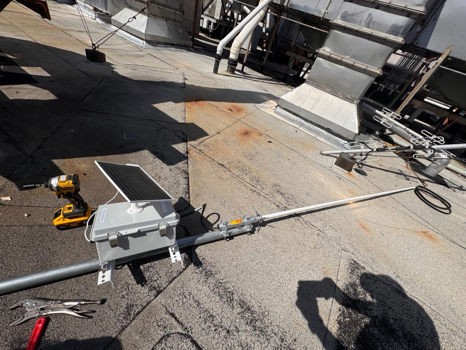 From there, things moved the way they usually do in mutual aid spaces. There was no formal rollout, but relationships that were already in place got levered, and one conversation after another opened the door to an opportunity: access to a rooftop on UNC Chapel Hill’s campus, twelve stories up, already home to infrastructure that carries a lot of importance — the NC VIPER radio system, the college’s microwave audio link, a Chapel Hill Fire Department repeater – a site where communications isn’t abstract but mission critical.