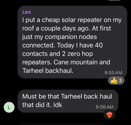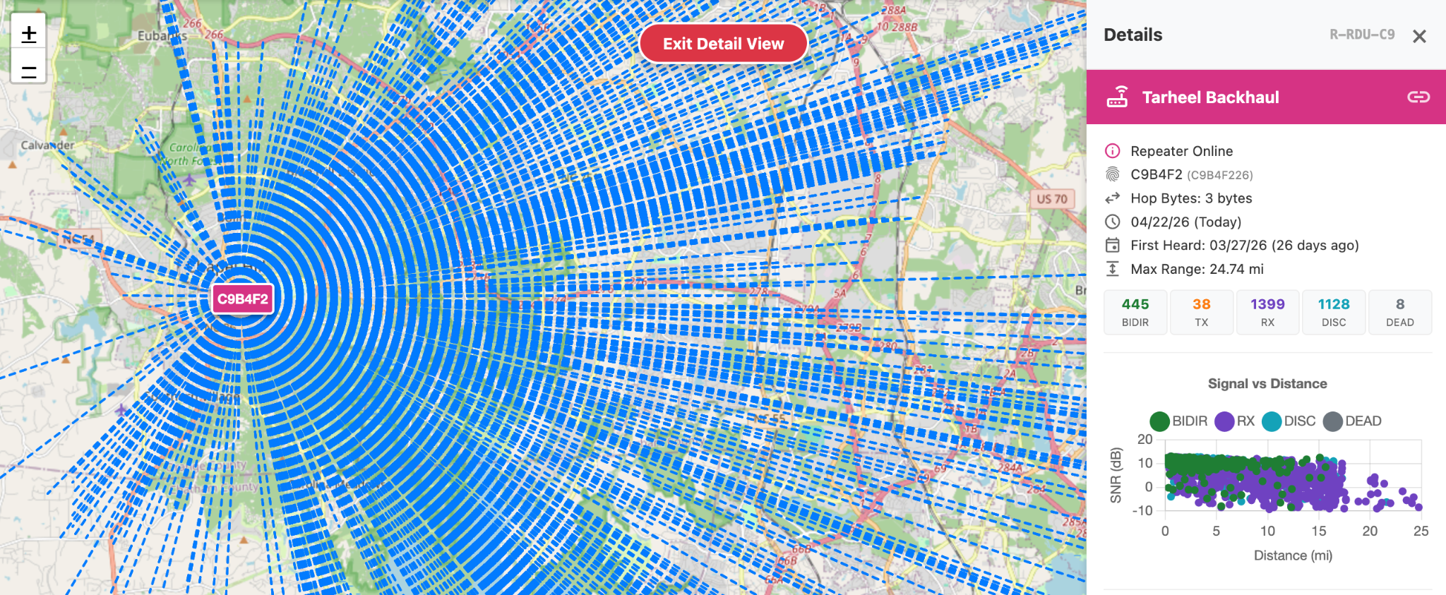At first, the impact was local. Chapel Hill stopped feeling like the edge of the network and started behaving like a real part of it. Paths appeared where there weren’t paths before, and nodes that used to sit just out of reach (“islands”) suddenly had somewhere to go.