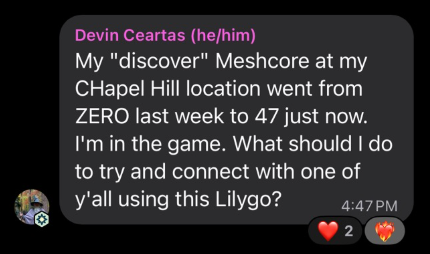 That meeting in January could have just been yet another tech meet-up. Instead, it became the starting point for something that now stretches across cities, across regions, across state lines. The rooftop in Chapel Hill is part of that story, but it isn’t the whole thing. The whole thing is that people showed up, and then kept showing up, and kept building, and kept connecting what they had to what other people had already put in place. There wasn’t a single moment where it all came together. But somewhere along the way, it did. And now Chapel Hill is on the mesh.